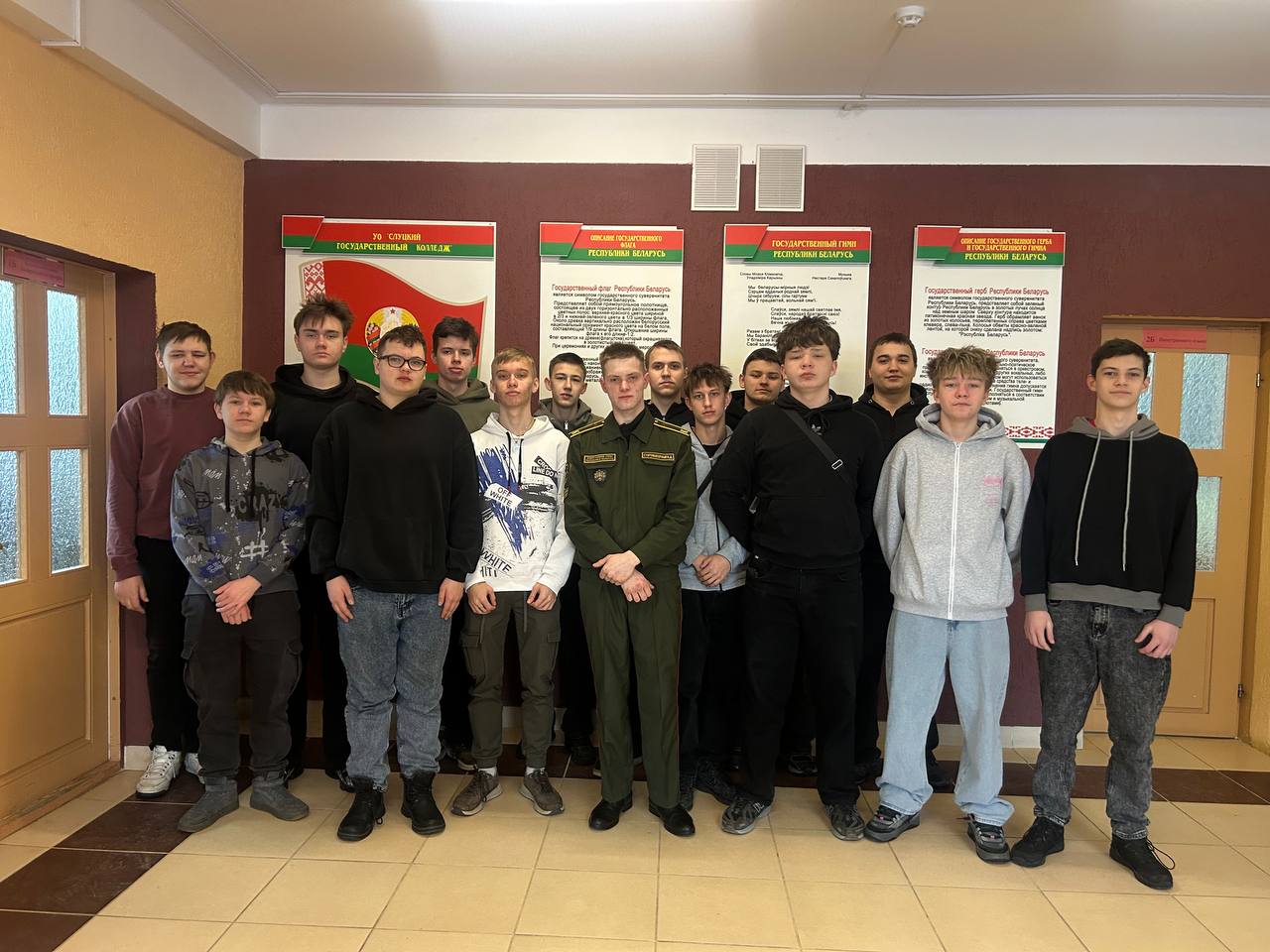 Сегодня курсантом военной академии Республики Беларусь проведен урок мужества с учащимися 1-х курсов на тему: «Служба в Вооруженных Силах Республики Беларусь - мой долг перед Отечеством»