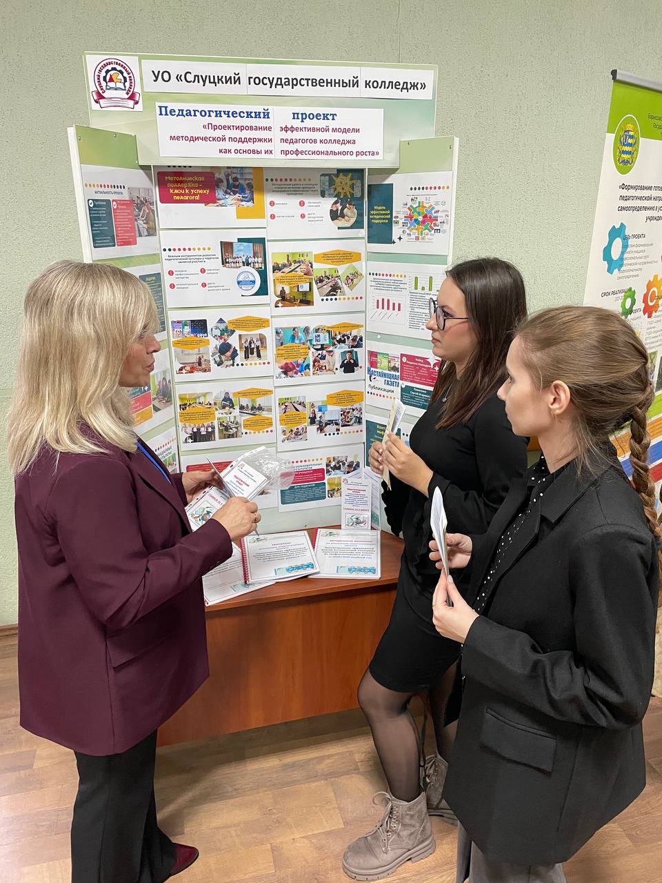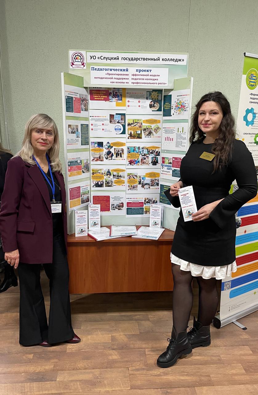 На научно-практической конференции с международным участием «Дополнительное образование взрослых: национальные и региональные практики», которая состоялась 3 ноября 2025 года на базе государственного учреждения образования «Минский областной институт развития образования», был представлен стендовый доклад-презентация по реализации педагогического проекта «Проектирование эффективной модели методической поддержки педагогов колледжа как основы их профессионального роста» учреждения образования «Слуцкий государственный колледж».