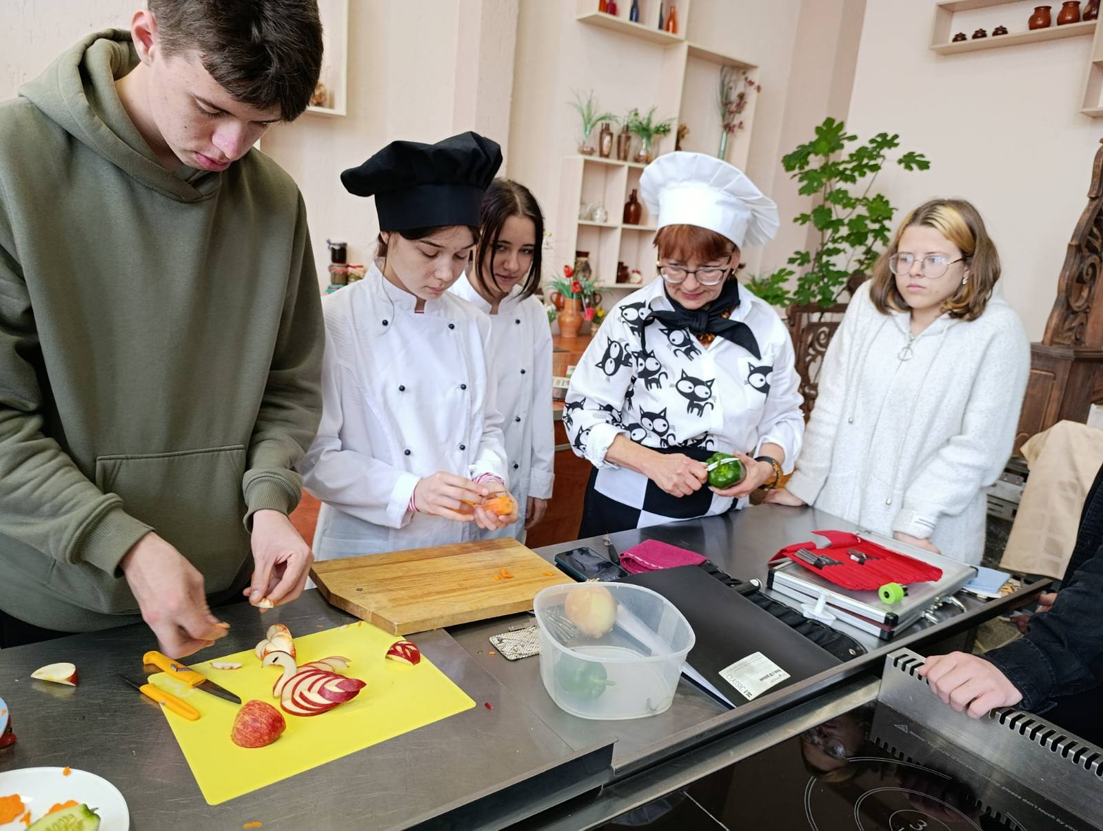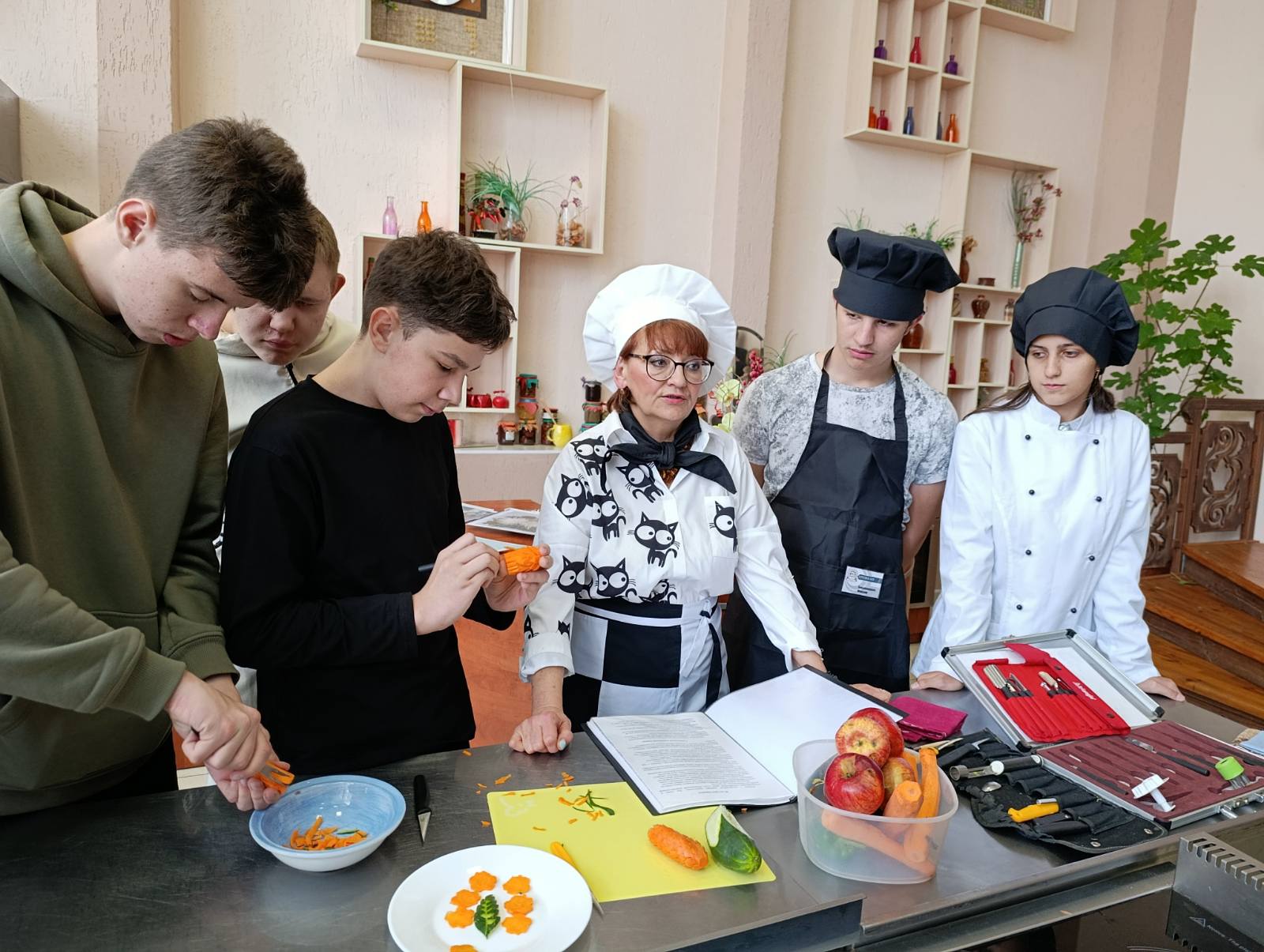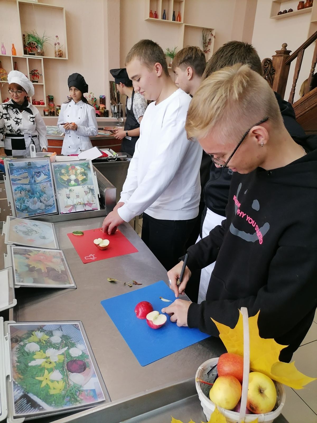 17.10.2025 в рамках декады отделения общественного питания и торгового дела с учащимися учебной группы № 625 был проведен мастер-класс «Карвинг - резьба по овощам» (мастера производственного обучения Конопелькина О.Б., Караневич Н.С.).