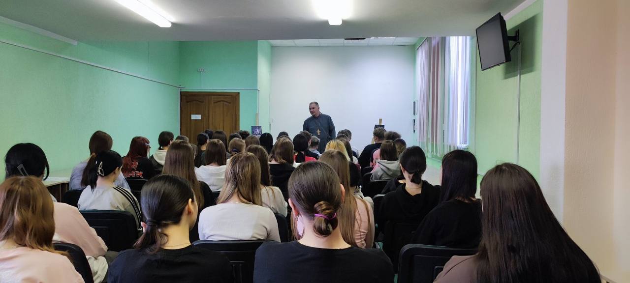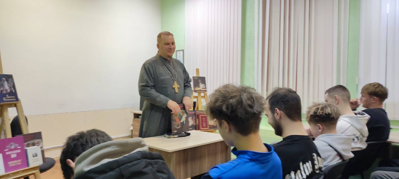 В общежитии колледжа прошла беседа с настоятелем православного храма Святого Благоверного князя Александра Невского Сергием Рындой, на тему, которая волнует многих: "Вечные ценности Православия"